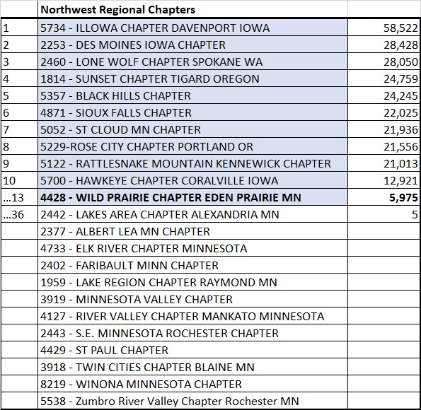 2026 Chapter Mileage as of 3/12/2026